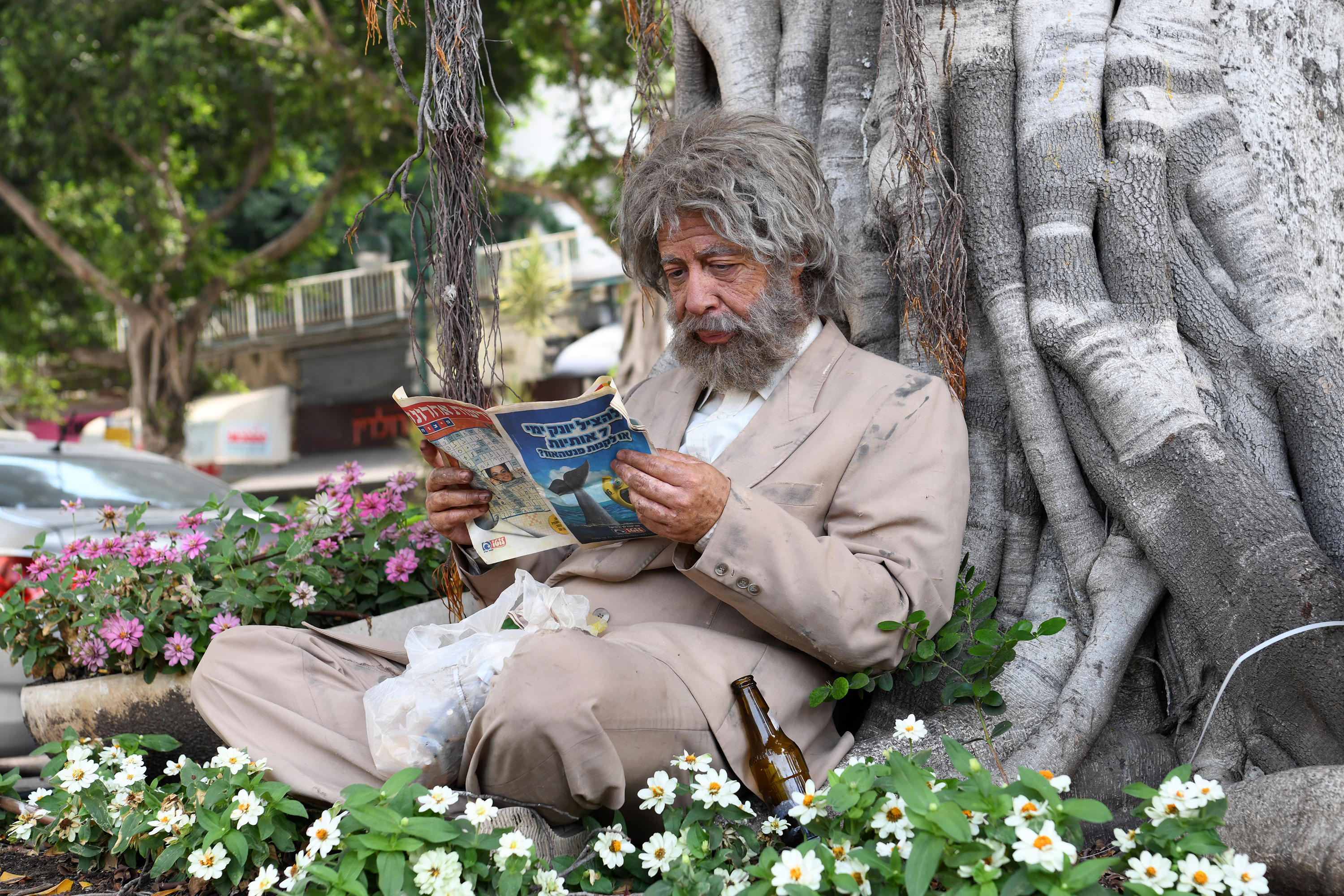 ‘Strive for the Present – Part 1’ is an imaginary documentary that revolves around the character of a lonely old man.  We follow a day in his life, wandering the streets, searching for food for survival, or for a random dialogue, which in fact, is also for his survival.